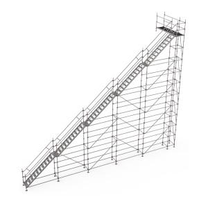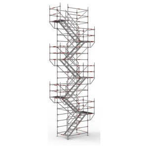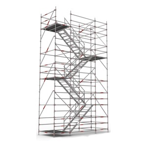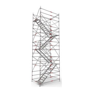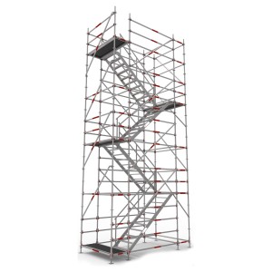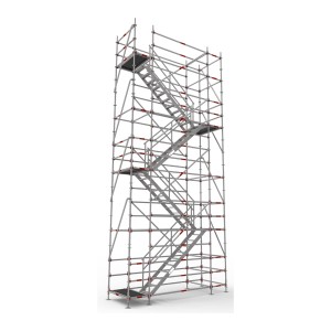 S Tower is a stair tower scaffolding system designed to provide safe and comfortable access to elevated working areas. With its integrated stair structure, spacious working platforms, and protective guardrail system, it offers secure vertical circulation for both indoor and outdoor projects.