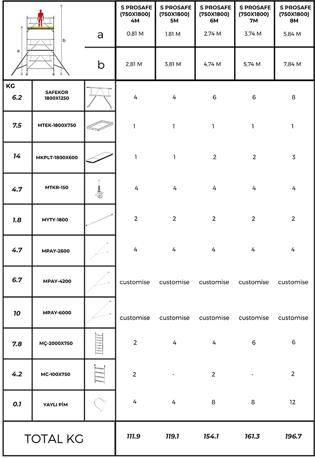 Dar alanlarda maksimum güvenlik sağlayan, kompakt ve sağlam mobil iskele sistemidir.