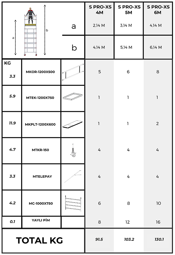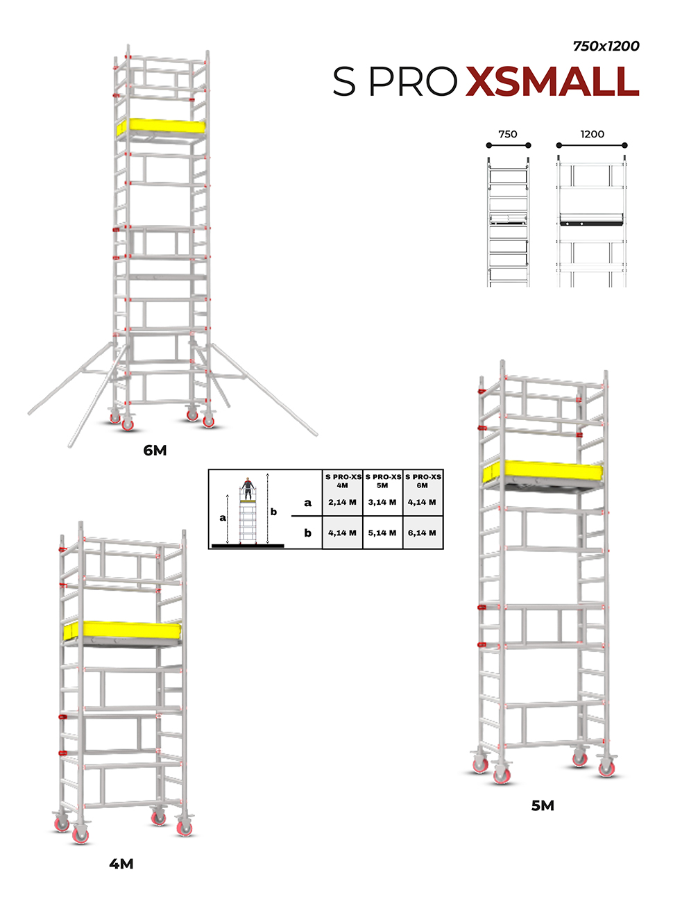 S Pro X Small, katlanabilir gövde yapısı ile hızlı kurulum sağlayan pratik mobil iskele çözümüdür.